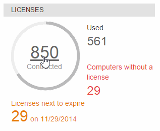 In the Status window, click the number that indicates the number of contracted licenses. You will be taken to the License list window.