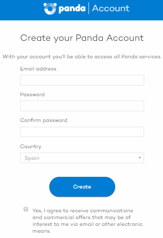 Вы получите доступ к веб-странице для создания Вашего аккаунта Panda.